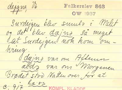 Dejne - eksempel på seddel fra Ømålssamlingen.