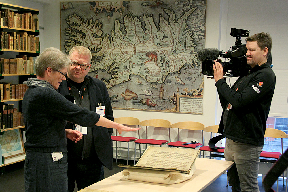 Bibliotekar på Nordisk Forskningsinstitut Ragnheiður Mósesdóttir fortæller om samlingen til islandsk tv.